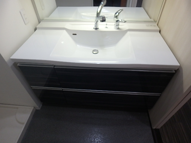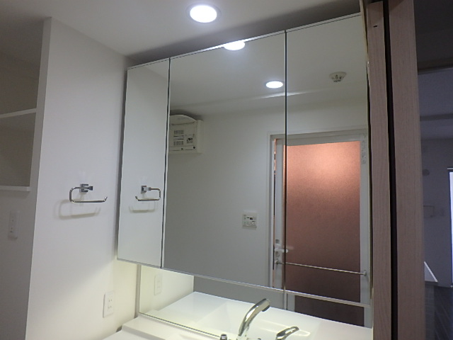 手洗い付きのタンクレストイレは、すっきりとしたデザインで空間を広く見せます。機能性とデザイン性を兼ね備え、毎日使う場所だからこそ快適さを重視。独立洗面台にはワイドな三面鏡収納を採用し、洗面用品をすっきり整理。洗面ボウルはサイドに物を置ける広め設計で、使い勝手も抜群です。