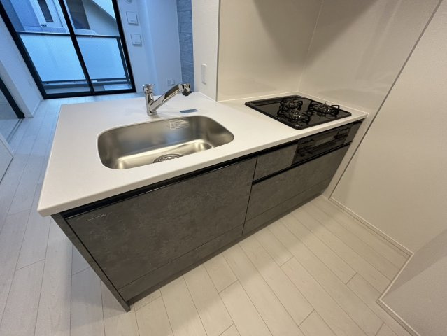 3口ガスコンロ付きで効率よく調理でき、カウンターキッチンなのでリビングとつながる開放感ある空間が魅力です。料理中も家族やゲストと会話ができる対面スタイルは、多くの人に選ばれている人気の設計。収納スペースや清掃のしやすさも備えたシステムキッチンで、毎日の暮らしをもっと豊かにします。