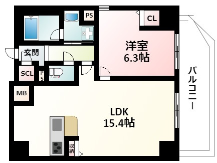 LDKは15.4帖で、ダイニングとリビングをゆったり分けて使用可能。洋室6.3帖はベッドを置いても十分な広さがあり、プライベート空間としても快適です。各室エアコン完備で一年中快適。インターネット無料で、在宅ワークや動画視聴もスムーズです。初めての同居や新婚の方にもおすすめです。