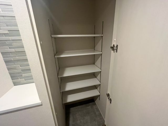 リビングにあるキッチンカウンター横の収納は、小物や雑誌をすっきり整理。洗面横のオープン棚も使いやすく、タオルや小物の収納に最適です。さらに洗濯機置き場やトイレ上部の収納棚、靴やアウトドア用品をまとめて整理できるシューズインクローゼットも完備。日常生活の整理整頓がしやすい設計です。