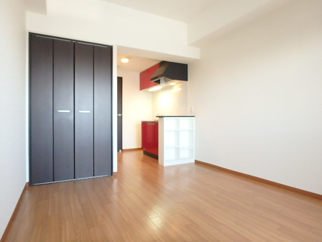 印象的なレッドカラーが空間のアクセントになり、開放感のあるレイアウトで、圧迫感を感じさせません。