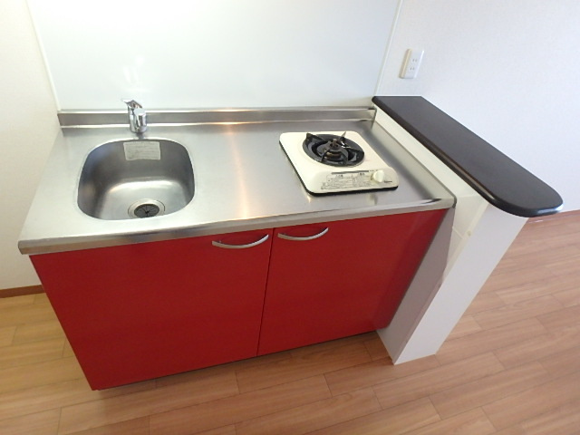 ガス1口コンロのシステムキッチンは、コンパクトで機能的。