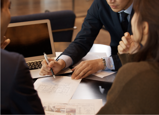お客さまの事業戦略・目的にマッチした 不動産の売買から活用までをサポートします。 メーカーやサービス業、流通業、小売・卸売業、個人資産家やプロの投資家の方まで、あらゆる業種・業態のお客さまに対して不動産の売却・購入をお手伝いしています。まずは、お客さまの売買目的や背景をていねいにヒアリングさせていただき、潜在的なニーズを明確化いたします。そのうえで、マーケット動向をふまえながら最適なプランをご提案し、実行することで、収益の拡大に確実に結びつけます。たとえば、それまで賃借していた複数のオフィスビルを解約し、土地購入・自社ビル建設によって拠点を集約。トータルコストの削減と、社員間のコミュニケーション強化に役立ったというケースです。この他、老朽化した賃貸ビルのリスクを回避するために、売却してその資金で耐震マンションを購入するなどのケースもあります。売却の場合は不動産査定から売却シミュレーション、購入の場合は適切な物件情報収集から購入シミュレーション、そして契約手続き完了、その後の運用の仕方までをトータルにサポート。遊休地を売却して賃貸ビルを建設し、投資用物件として活用するなどの総合的なプランのご提案も可能です。